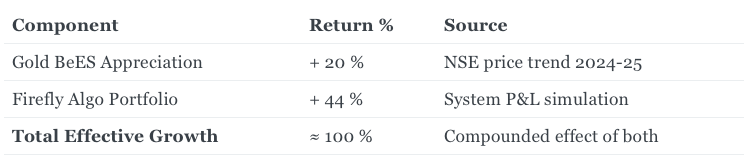 By June 2025, Raghav’s net worth had doubled — his gold kept appreciating while his algo portfolio compounded returns.