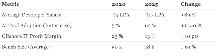 📊 By the Numbers: Indian IT Sector 2020 → 2025